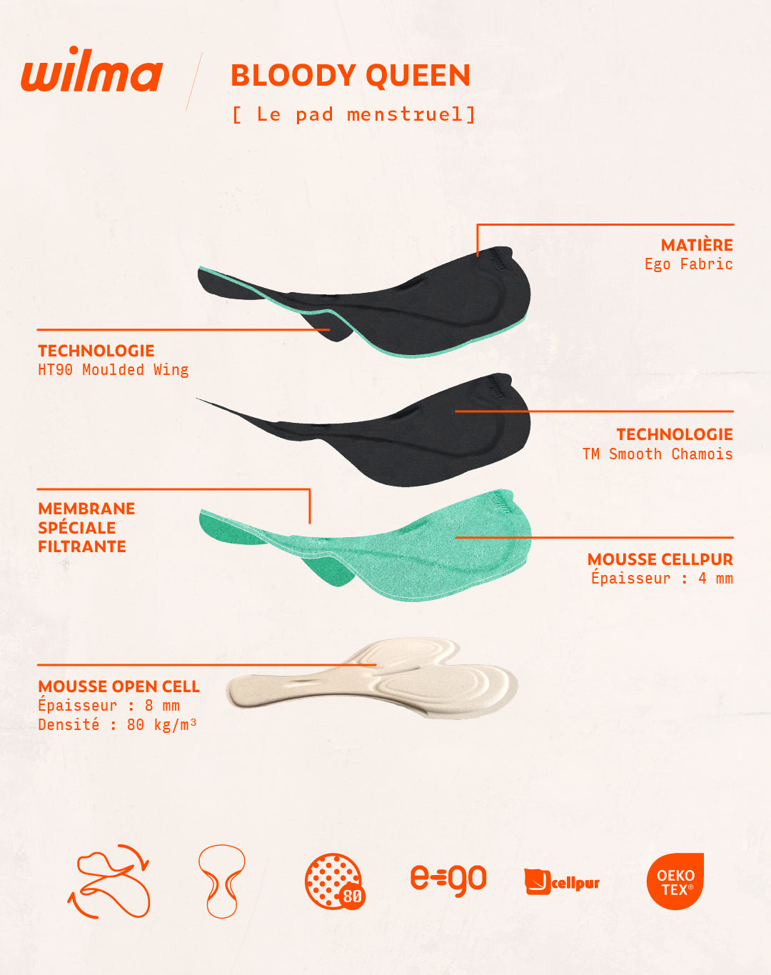 Si tu utilises le cuissard pendant tes règles, nous te conseillons de passer le pad sous l'eau froide pour enlever l'excédent de flux.