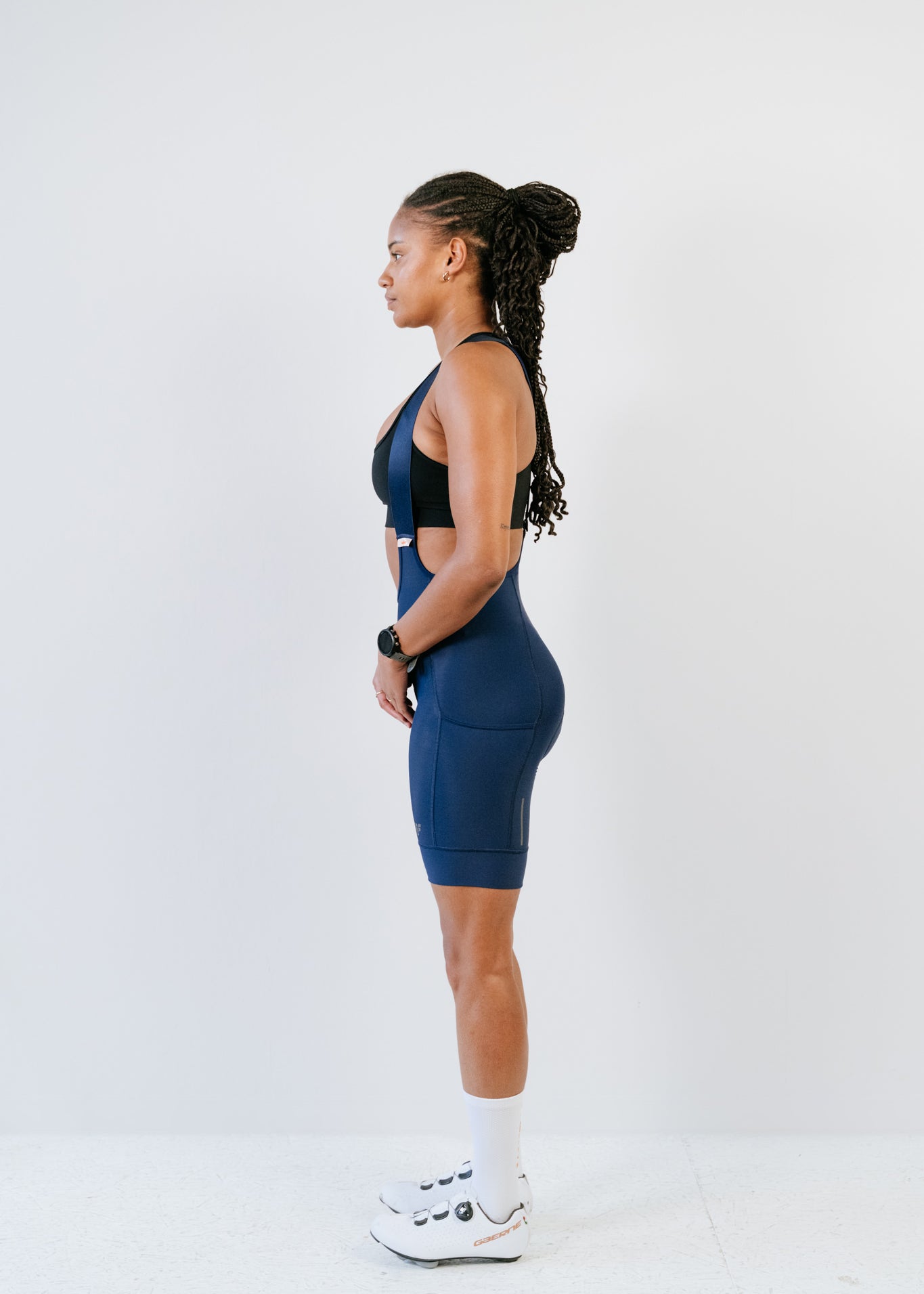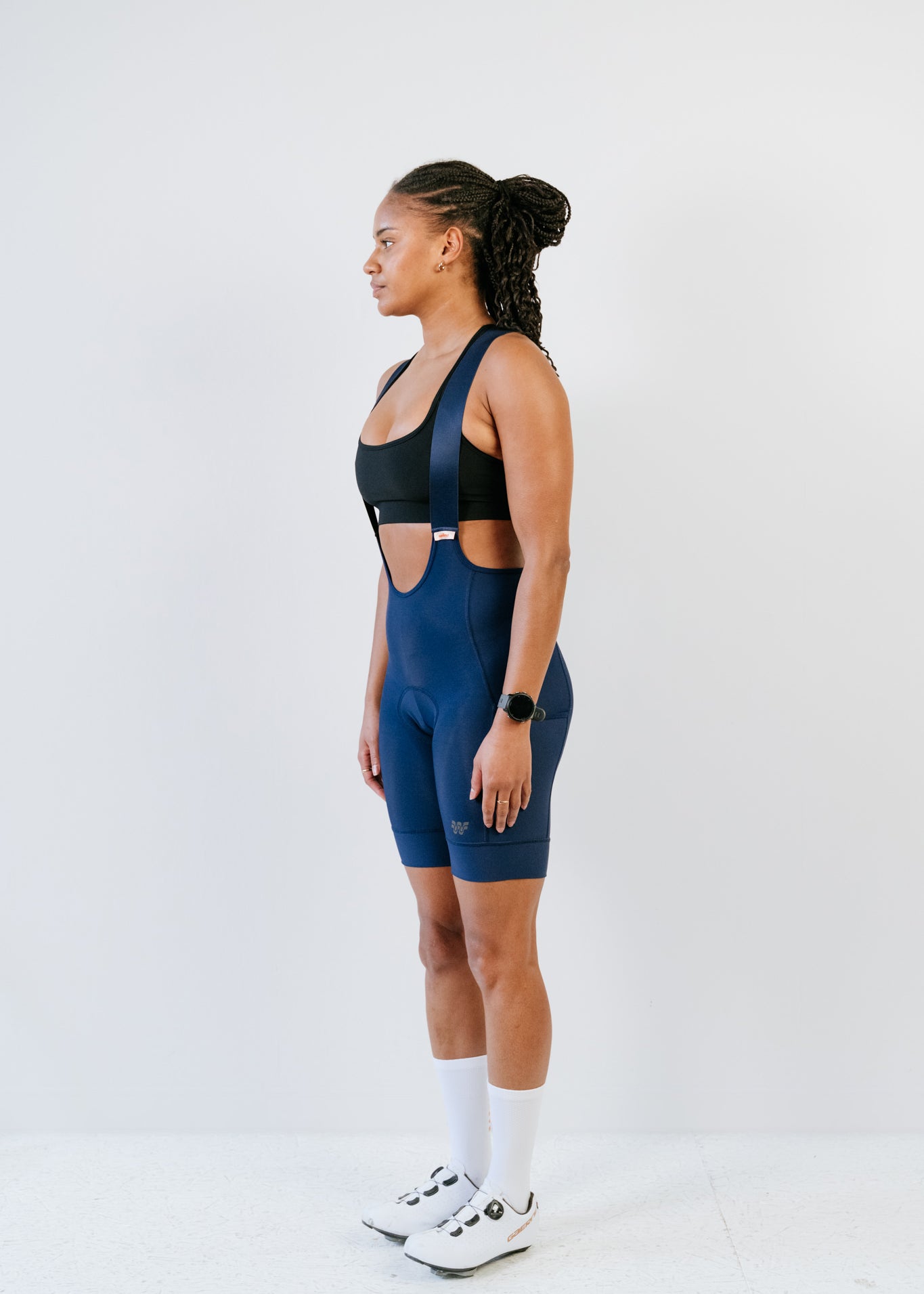Bibshort court à bretelles détachables - Raphaëlle Noir - Cuissard menstruel vue coté poches cargo
